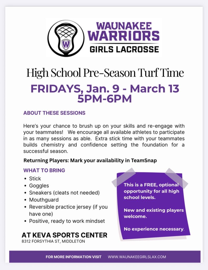 1/9/26 Turf Time starts! By waunakeegirlslacrosse3 | December 30, 2025 | Comments Off on 1/9/26 Turf Time starts! Read More